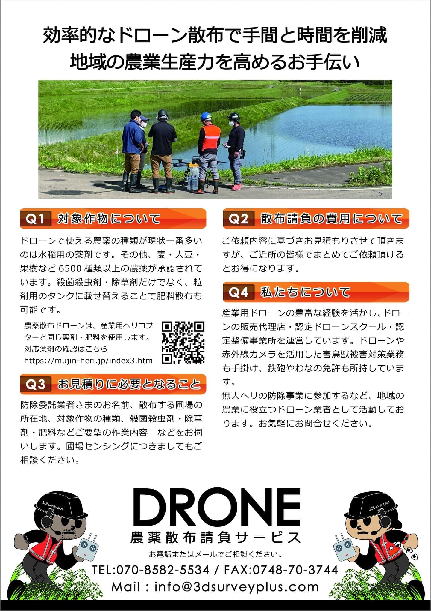 3DSurveyplus合同会社は、国産ドローンで非常に使い勝手の良いNTT e-DroneTechnology社製、農薬散布ドローンAC101の販売代理店・認定ドローンスクール・認定整備事業所です。